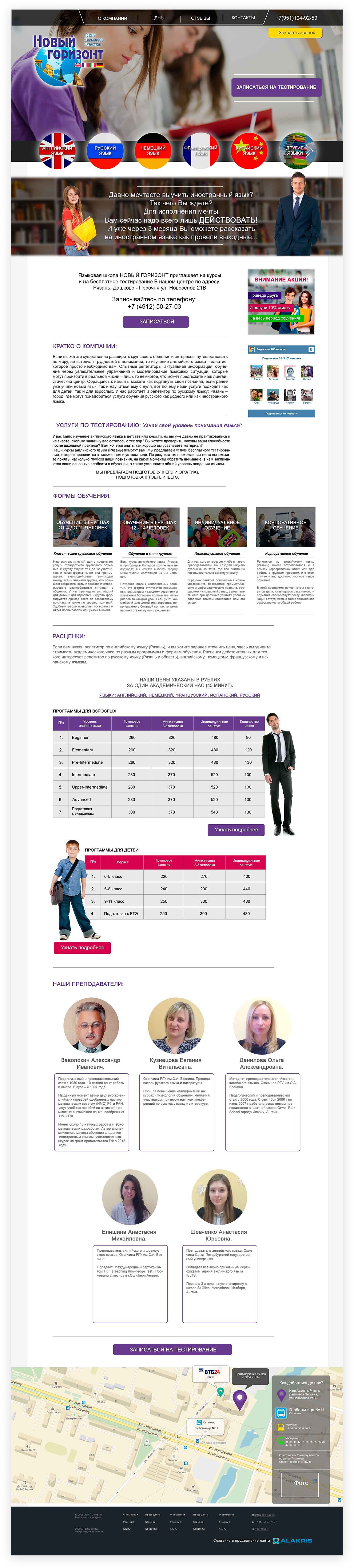 Заказчик, компания «Новый горизонт», оказывает услуги по обучению иностранным языкам, переводам текстов и другие. Обширный перечень услуг компании предполагал создание сайта визитки в Арзамасе, где будет доступно подана вся необходимая информация. Наша студия создания сайтов в Арзамасе успешно справляется с такими задачами.