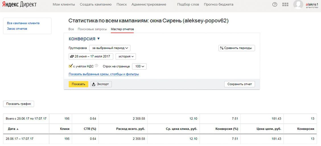 Замеры соотношения количество посетителей сайта в Рязанской области к числу сделанных заказов показали, что ежедневно замер-расчет стало заказывать по 13 человек. На привлечение одной заявки тратился 181 рубль.