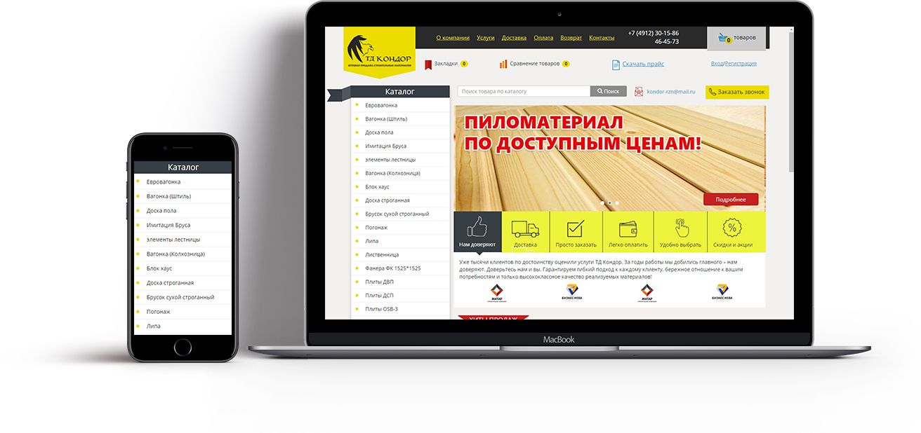 По заказу торгового дома «Конкорд» нашими специалистами выполнено создание магазина на опенкарт для интернет-магазина пиломатериалов в Рязани. Заказчик поставил цель создать сайт, где потенциальным клиентам будет максимально просто найти нужную продукцию. Ставка в продвижении пиломатериалов была сделана именно на простоту их выбора и заказа.