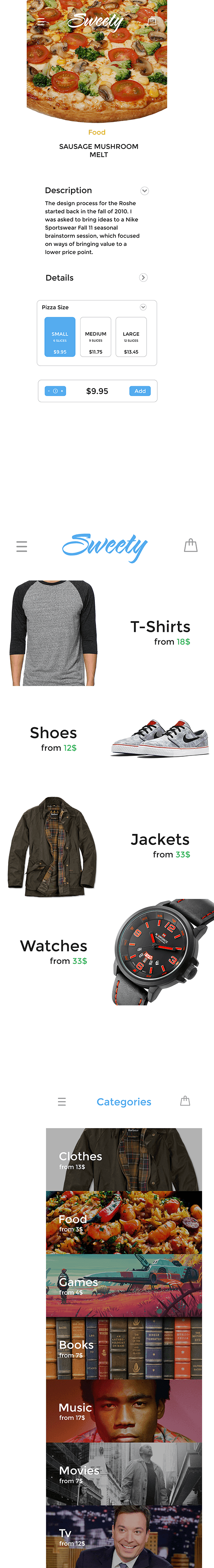 Заказчик, компания по продаже одежды и обуви через интернет, поставила перед нами задачу создать мобильное приложение, дизайн которого должен был соответствовать корпоративному стилю, но в то же время быть максимально удобным для пользователей мобильных устройств. Нашими специалистами были предложены решения, которые позволили полностью реализовать замысел.