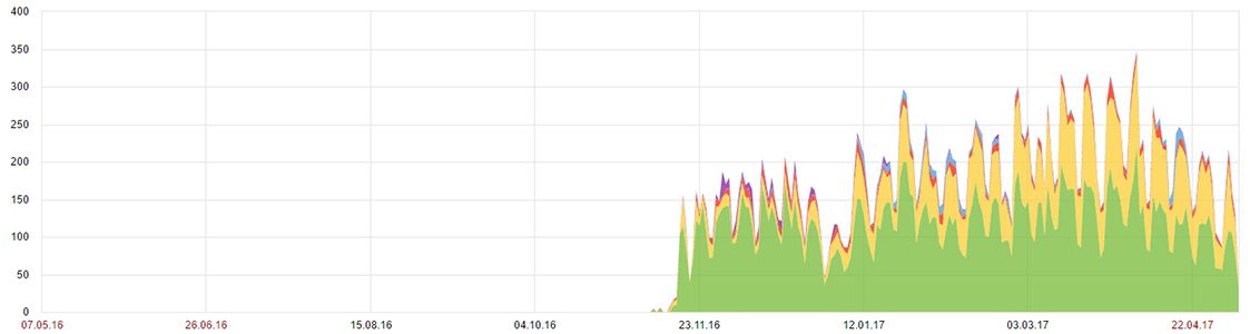 Сейчас сайт полностью проиндексирован поисковыми системами Гугл и Яндекс имеет хороший стабильно растущий траффик, по многим ключевым запросам находится в ТОП 5.