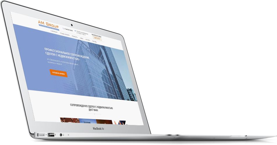 Получив задание создать сайт компании AM Group, оказывающей юридические услуги при сделках с недвижимостью, наши специалисты занялись разработкой сайта в строгом, но при этом приятном стиле. Требовалось создание адаптивного сайта, где посетители могут получить полное представление о работе компании и заказать услуги.
