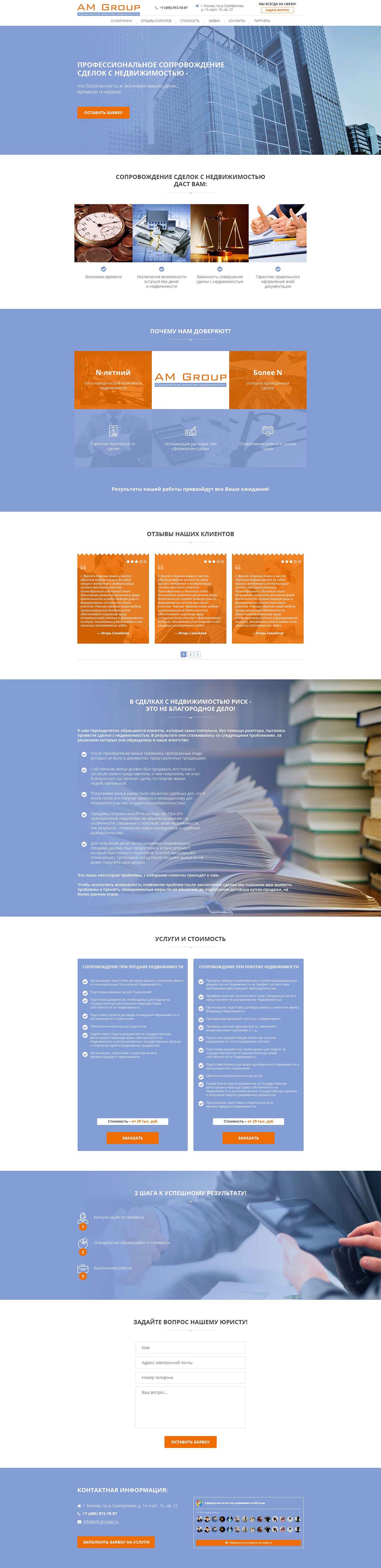 Получив задание создать сайт компании AM Group, оказывающей юридические услуги при сделках с недвижимостью, наши специалисты занялись разработкой сайта в строгом, но при этом приятном стиле. Требовалось создание адаптивного сайта, где посетители могут получить полное представление о работе компании и заказать услуги.